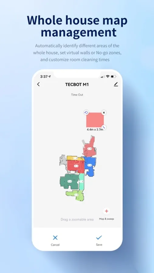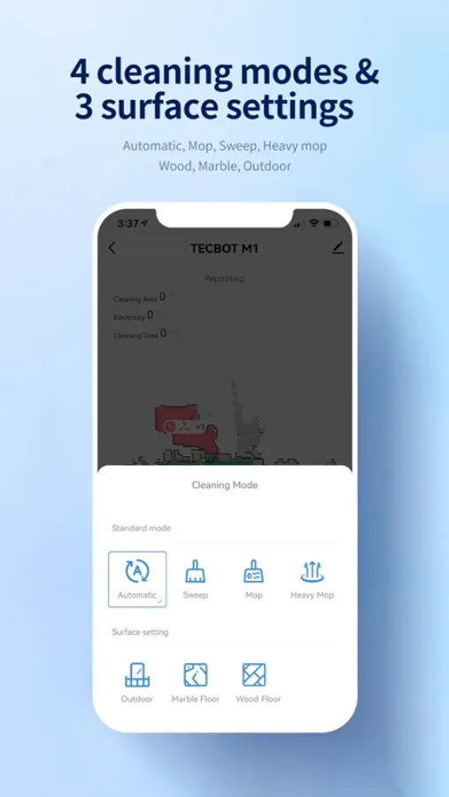Select cleaning modes and zones in the map to get to the right function for the right place.