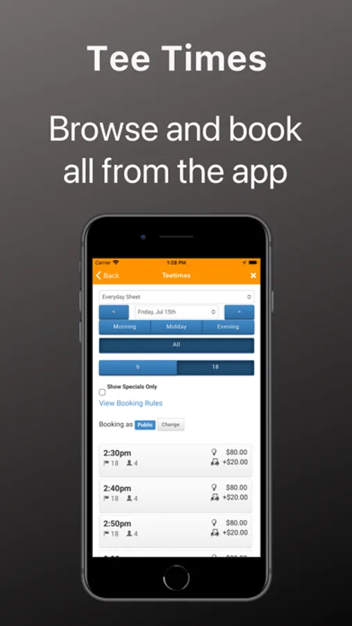 Our official mobile app makes it easy to book and pay for tee times, read up on the latest news from the course, browse and redeem offers, provide feedback on your experience to help us make improvements, and much more!