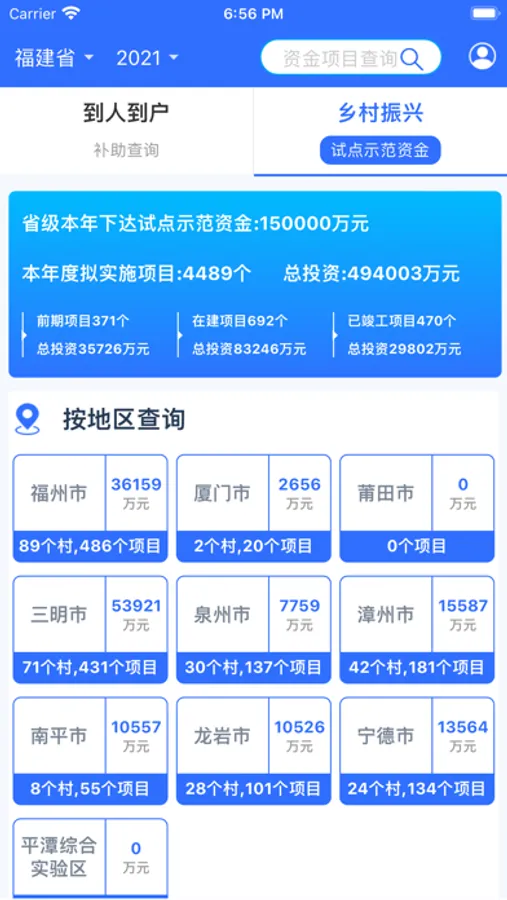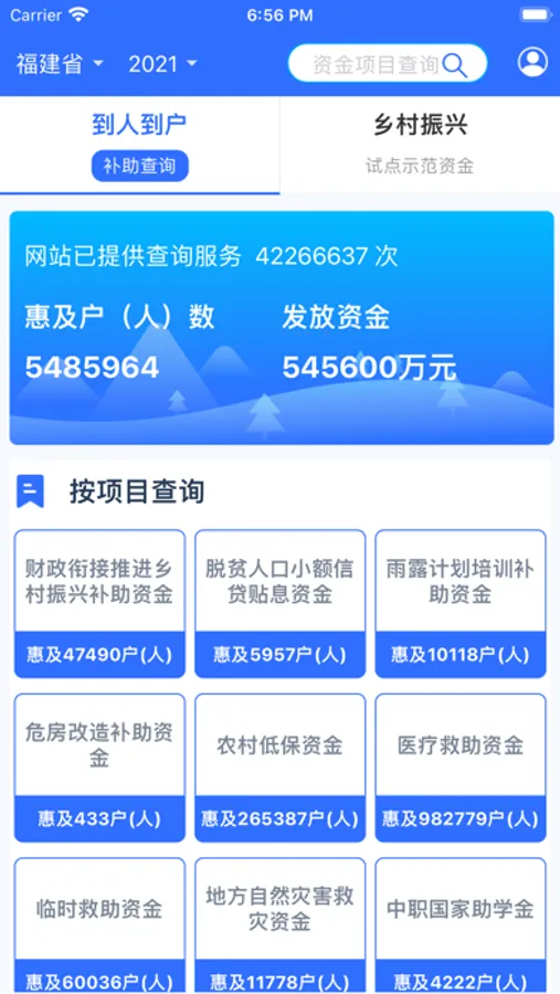 “福建乡村振兴”是福建省财政厅和农业农村厅牵头以福建省扶贫(惠民)资金在线监管系统为基础,按照“提质、扩面、增效”的建设要求,对系统进行全面升级改造,巩固拓展脱贫攻坚成果,以精准监督助力乡村振兴。可查询发放到人到户的补贴资金、乡村振兴试点示范补助资金、农业新型经营主体和村级三资运行情况等,通过手机APP、微信小程序、互联网网站等主动公开,精准“晒个人”,主动“晒项目”,定向“晒集体”,让方便群众监督。为充分保障群众的知情权、参与权、监督权,增强政府公信力,APP已与“12345”便民服服平台,“12388”举报网站进行对接,方便群众咨询举报。