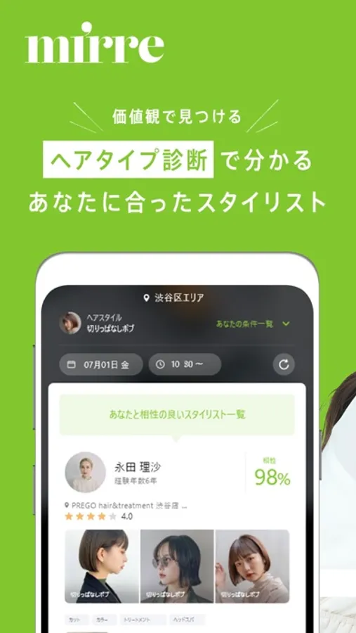ヘアスタイル診断で本当のあなたに合ったスタイリストが探せる【mirre(ミラー)】。