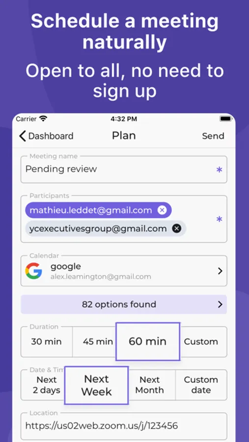 You are fed up of sending numerous messages and emails to find one slot for one meeting. Take the shortcut, send one email with Letsmeet and the meeting will be set up automatically.