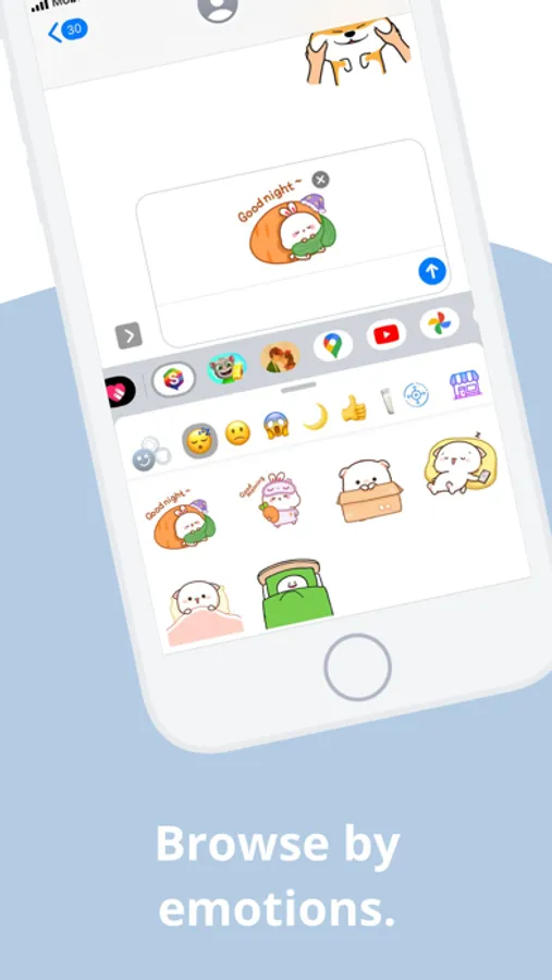● Browse stickers by emotions, characters, easy to use for everyone.