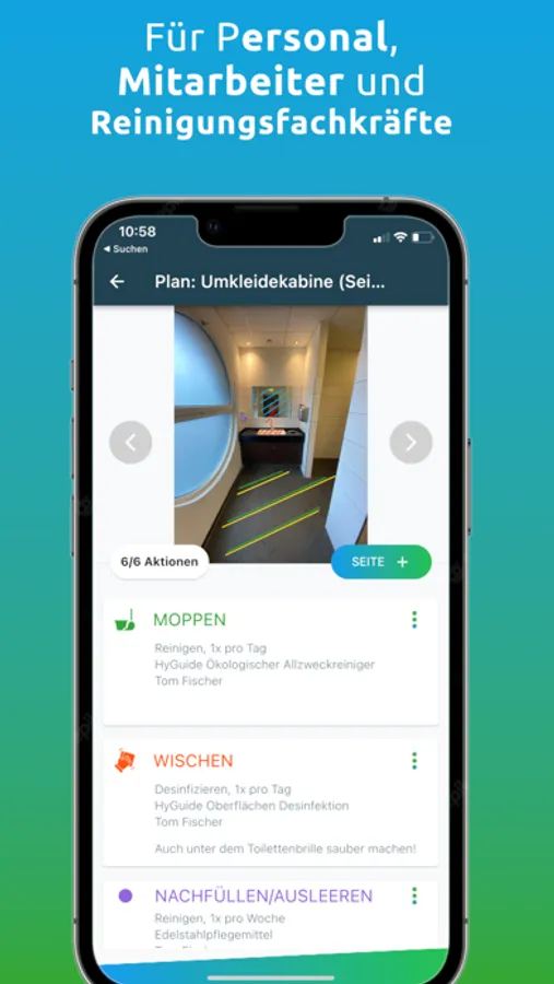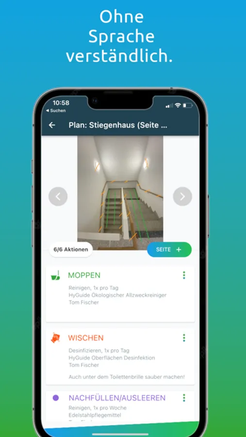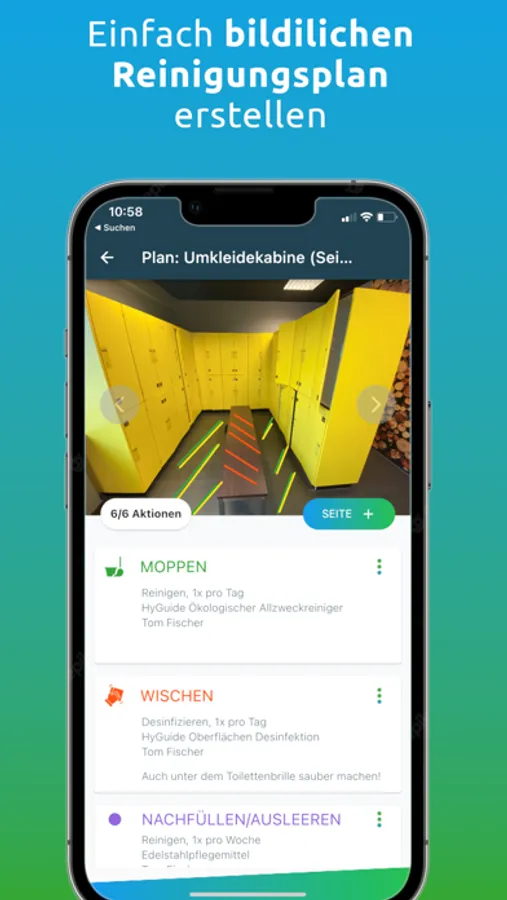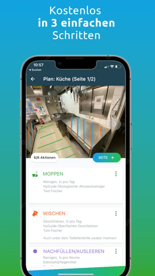 Mit der HyGuide App erstellst Du rasch, einfach und völlig kostenlos einen Reinigungs- und Desinfektionsplan, der für Dich, Mitarbeiter, Kollegen oder Reinigungsfachkräfte leicht zu verstehen ist.