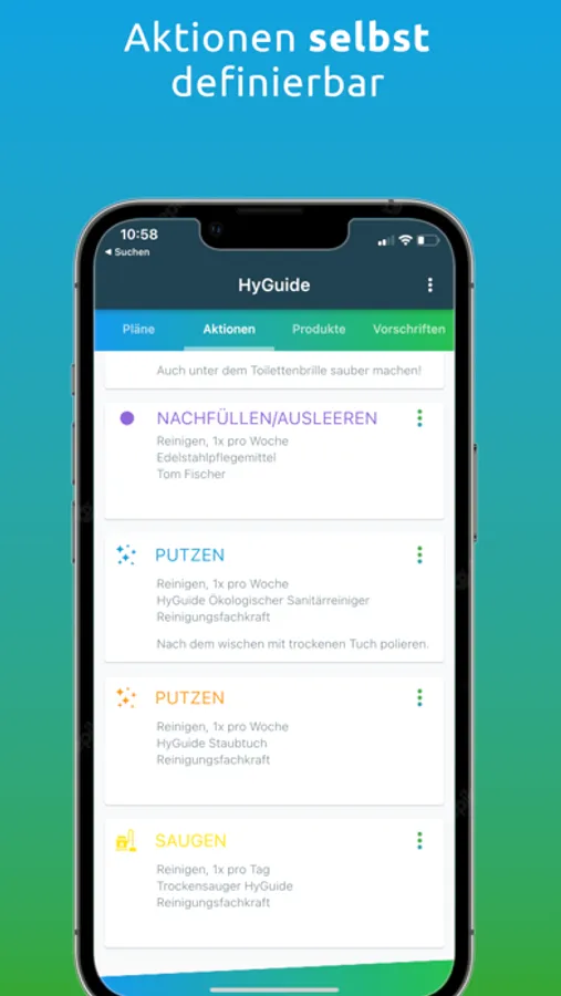 Wenn Du gesetzlich dazu verpflichtet bist, einen Hygieneplan zu haben, kannst Du diese App auch prima dafür benutzen, um Deinen individuellen Reinigungs- und Desinfektionsplan zu erstellen.