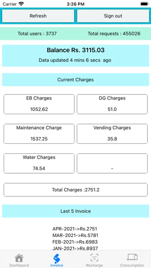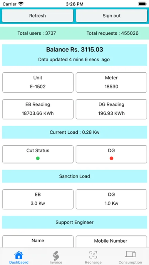Intents supported: Balance, Current Source, EB and DG Reading and consumption, Cut status, invoice and recharge history, invoice download, online recharge etc.