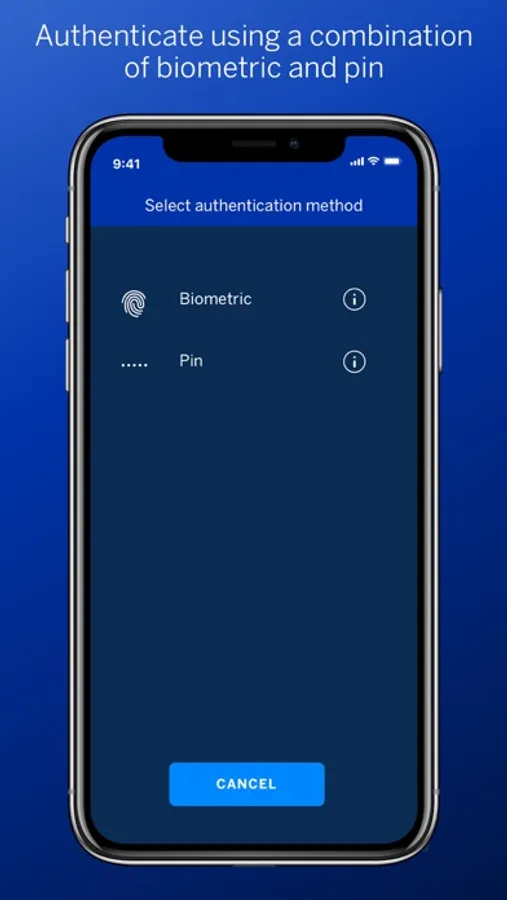 2. Authenticate via biometric (fingerprint and/or facial recognition) or a pin