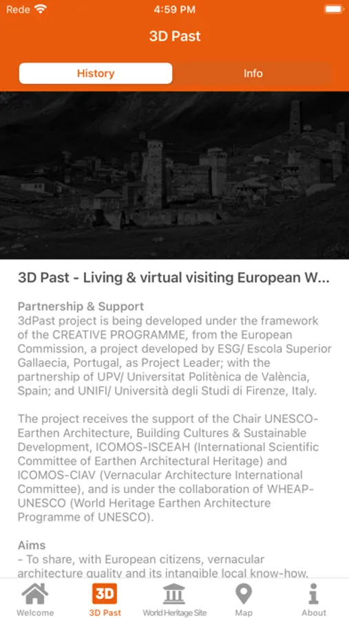 3DPast App is the result of 3DPAST project developed under the framework of the CREATIVE PROGRAMME, from the European Commission, by ESG/ Escola Superior Gallaecia (Portugal), as Project Leader; with the partnership of UNIFI/ Università degli Studi di Firenze (Italy), and UPV/ Universitat Politècnica de València (Spain).