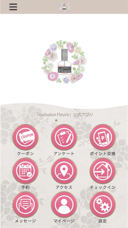 このアプリでは、Fleurirの最新情報の受け取りや便利な機能を使う事ができます。