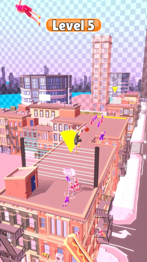 Don't allow opponents catch you. Run away from them and dunk from roof to roof.