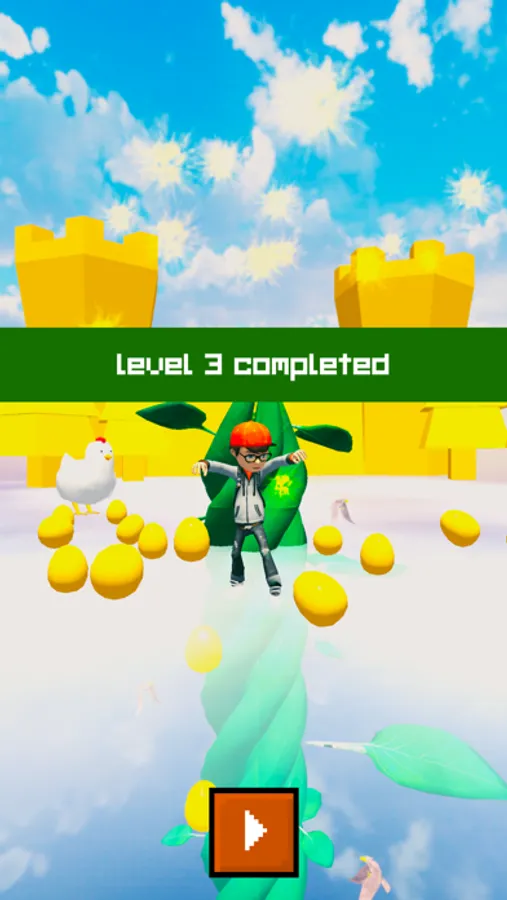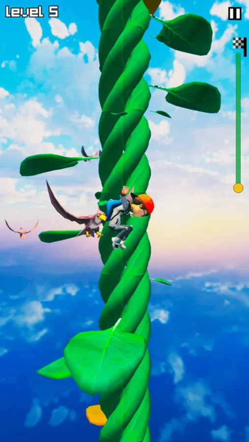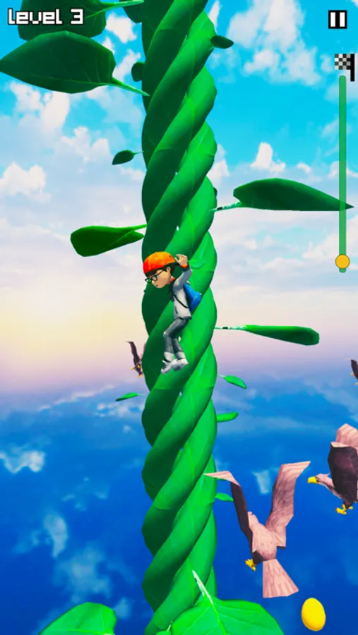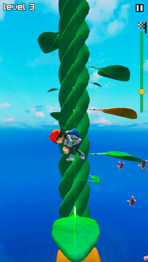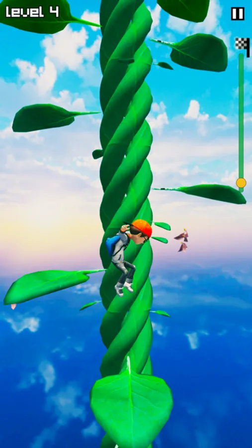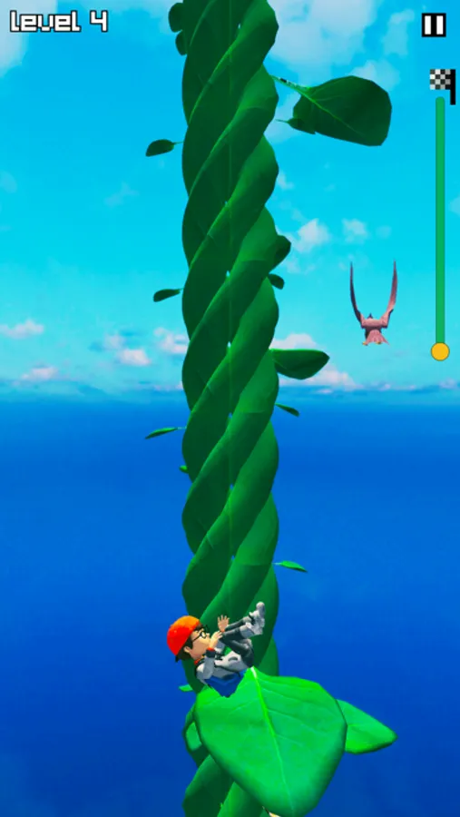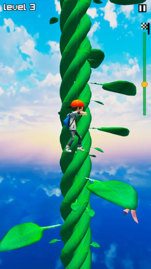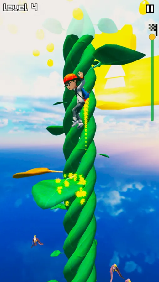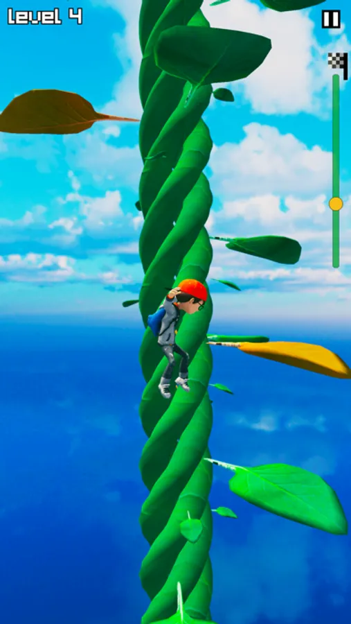 Jump on the leaves of a giant bean sprout and try to reach the golden castle Try not to step on yellow leaves as they can fall! The greener the leaf the better you jump!