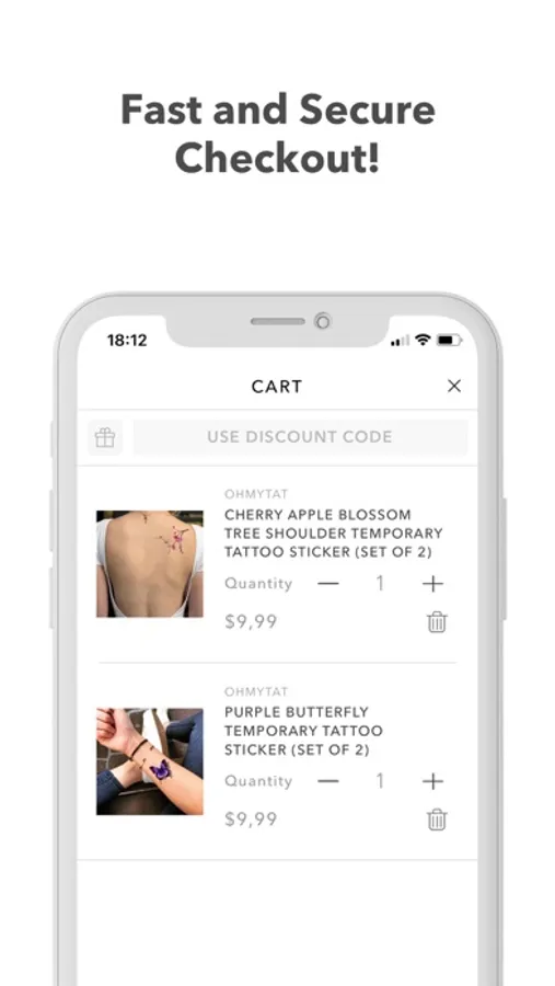 The official app for ohmytat.com. Shop over 4,000 temporary tattoo stickers with ease. Our goal is simple: to let you try and wear all your favourite tattoos. Yes we understand sometimes it's hard to make an ink decision (especially for lifetime), and yes there are sooooo many beautiful tattoos on social media! Besides saving them into your favourite tattoo art designs collection every time, now you can also tattoo some of them on your physical body, temporarily!