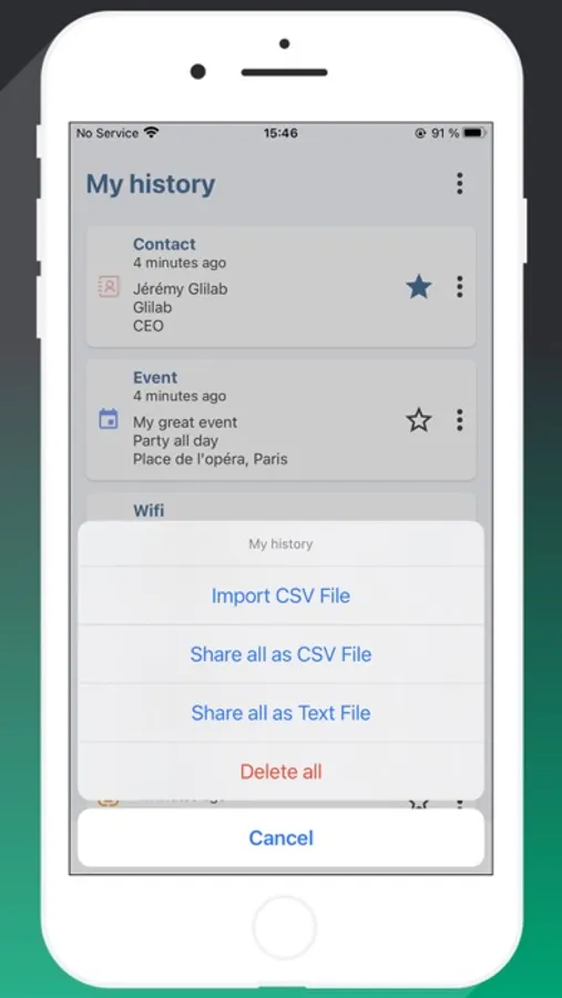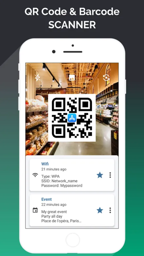 You will be able to scan event QR codes, add them to your calendars, scan a Wifi QR code to connect to Wifi directly from the application, scan contact QR codes and quickly add a new contact to your address book.