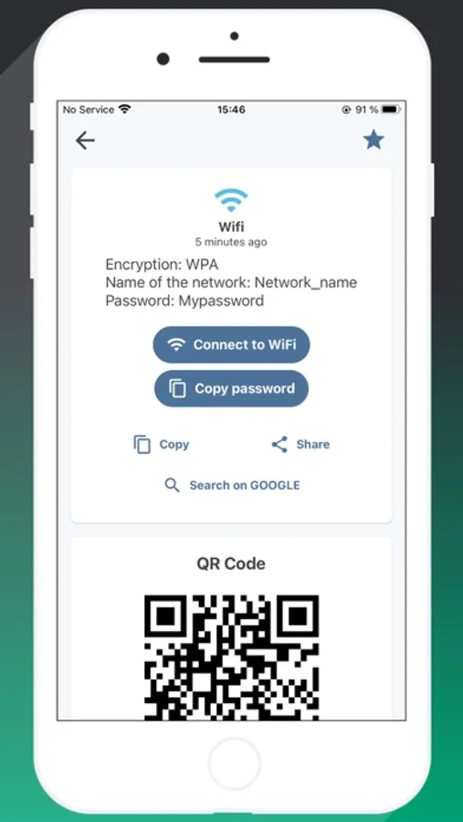 Create your wifi QR Code by choosing the name of the SSID network, the password, the network encryption and define if the network is hidden or not.