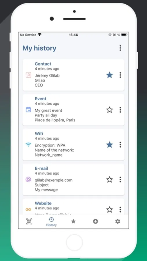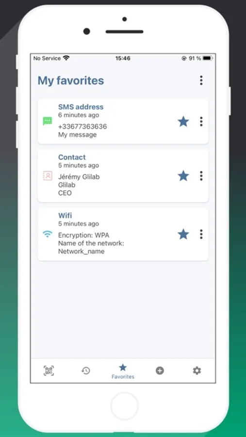Sort and organize your QR Codes using your "My History" and "My Favorites" lists to keep your codes organized.