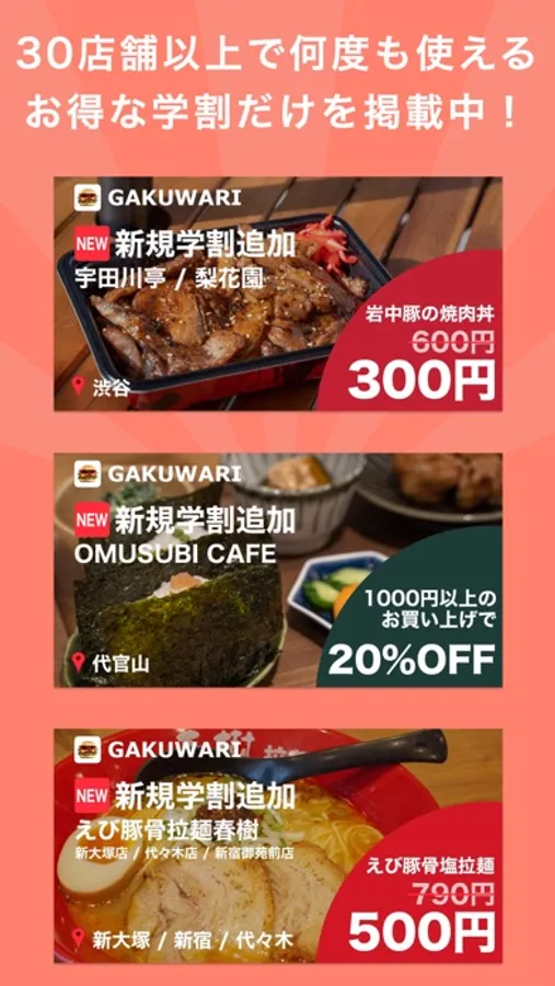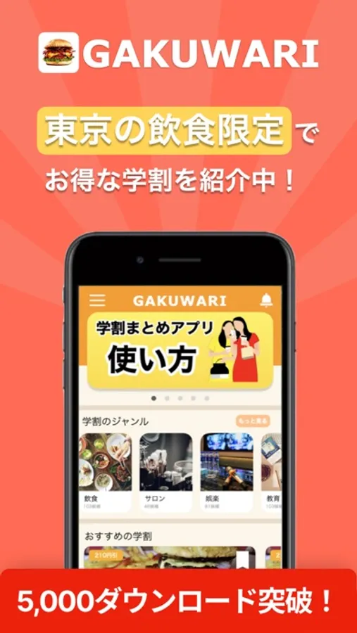 【学生必見!】飲食やファッション、カラオケなどのお得な、学割をまとめたアプリ「GAKUWARI」!