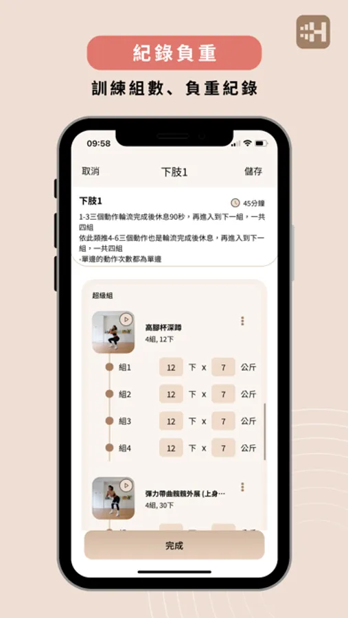 - 紀錄妳的運動組數及重量,達到漸進式超負荷