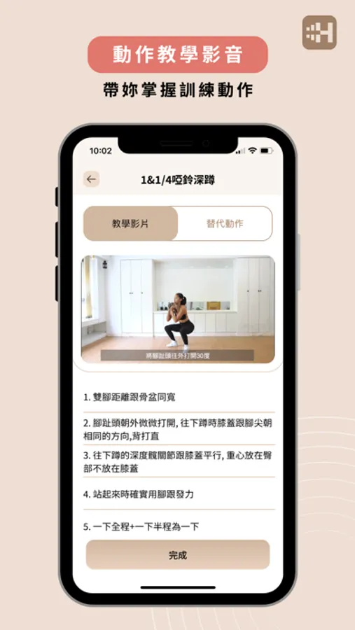 - 動畫與影片指引,有如妳的教練就在身邊,幫助妳使用正確姿勢