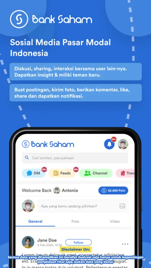 Diskusi , sharing, interaksi bersama user lain-nya. Dapatkan insight & miliki teman baru. Buat postingan, kirim foto, berikan komentar, like, share dan dapatkan notifikasi.