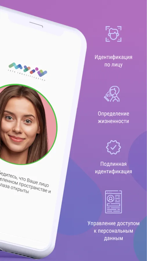 Приложение позволяет в считанные секунды пройти идентификацию без посещения мест оказания услуг, простаивания в очередях и предоставления копий или фотографий документов, удостоверяющих личность. Все, что Вам нужно — это мобильное устройство с фронтальной камерой и подключение к сети Интернет.