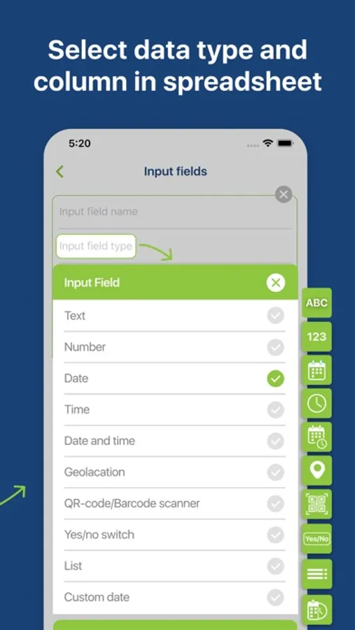 - QR and Bar codes (scans code and save data to the spreadsheet);