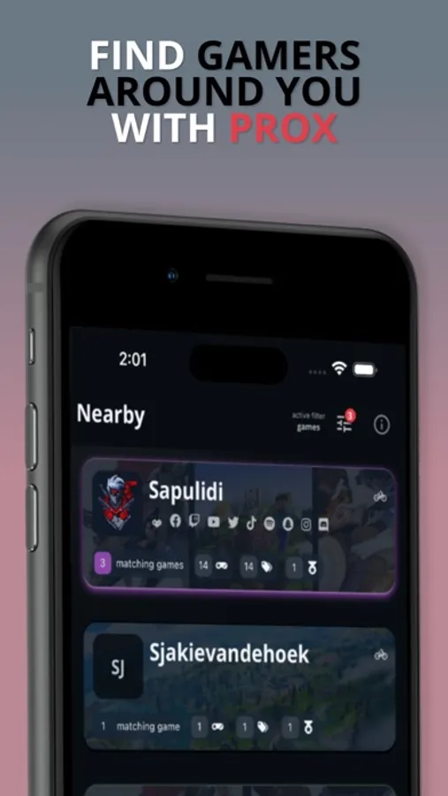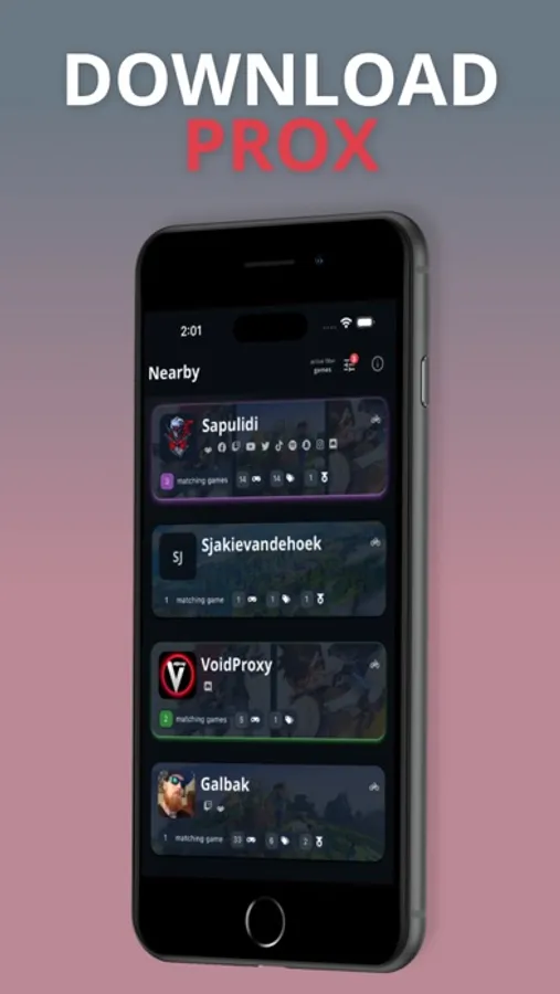 Have you ever wondered who nearby shares your love for gaming? Whether it's on PC, PlayStation, Xbox, Switch, mobile, or even retro platforms like SEGA and Atari, Prox is here to connect you with gamers near and far.