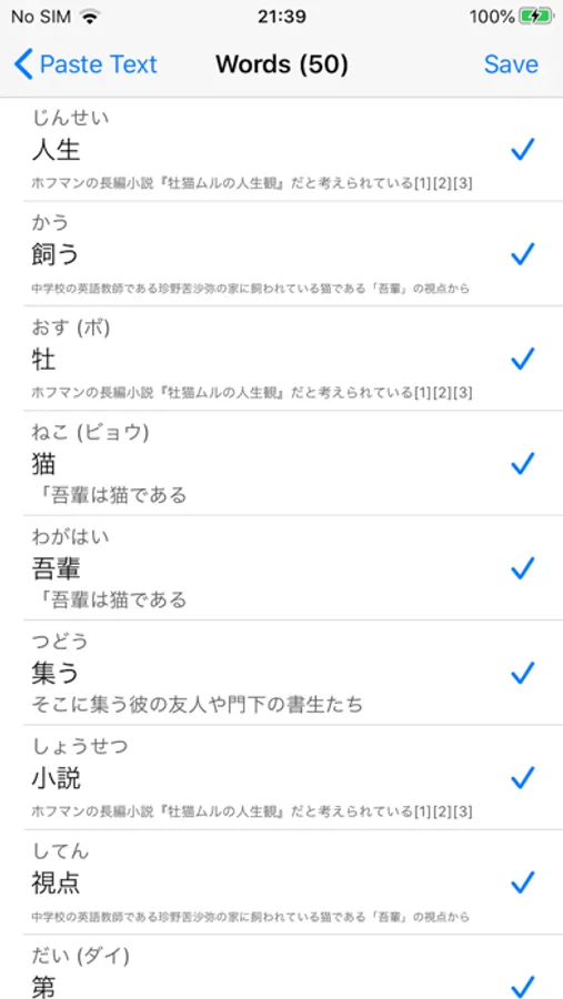 2.1.2 Paste Text: You can paste text from web browser or any text viewer, then the application will split the text to words and add the hiragana automatically.
