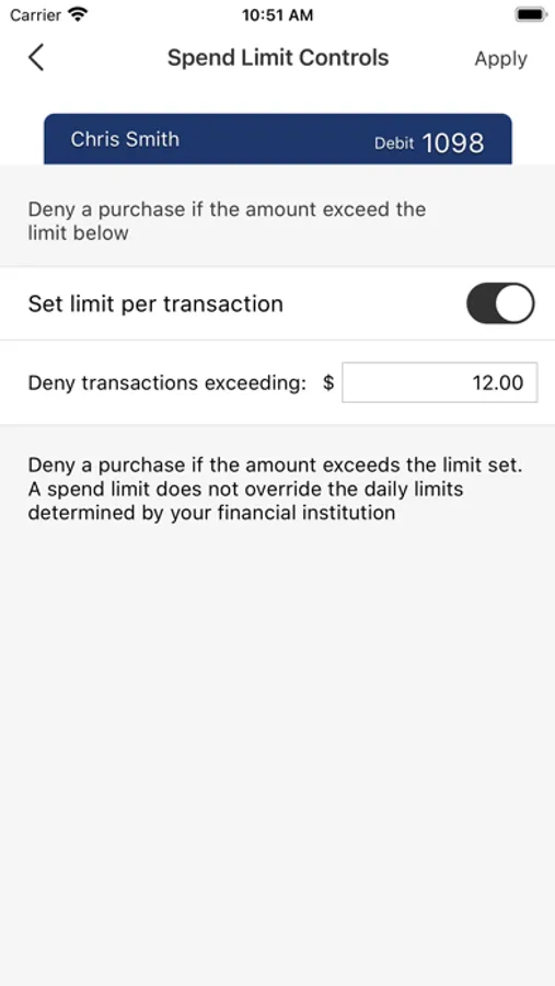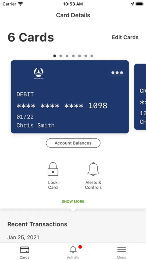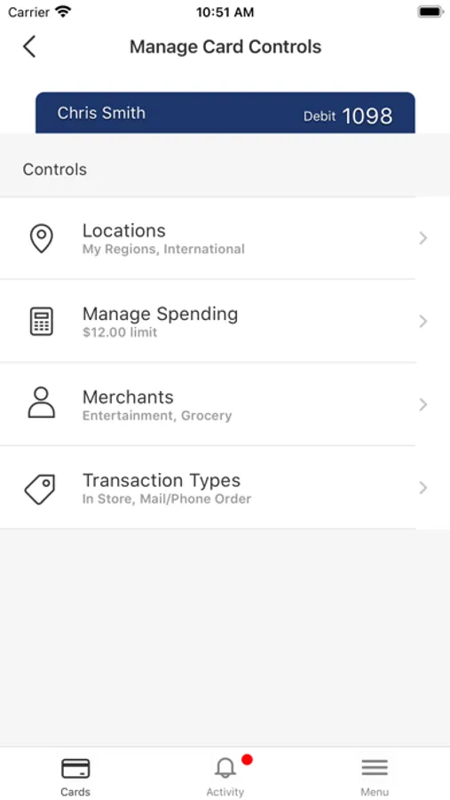 Alerts for PIN and signature transactions can be set up to keep you informed of your card usage and help you quickly detect unauthorized or fraudulent activity. This app can send an alert when a card is used or when a card transaction has been attempted but is declined – and additional customizable alert options are available. Alerts are sent in real time, immediately after a transaction has taken place.