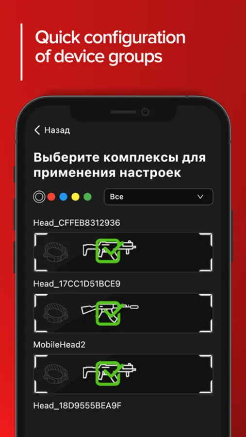 It works in conjunction with the Alfatag laser tag equipment. The application allows you to set up tactical and technical characteristics in a short time and send teams into battle.