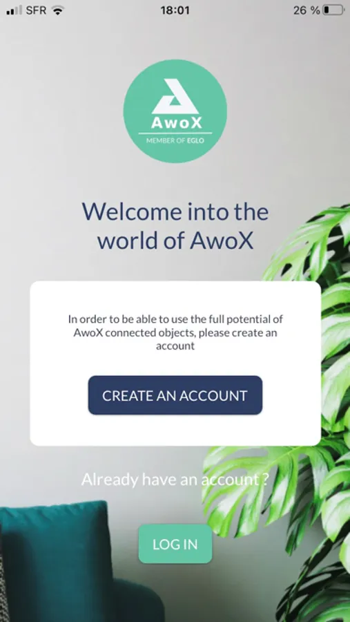 If you already have an AwoX Smart CONTROL account, and in case you don’t own legacy devices in the following list : EGLO connect.wifi products, EGLO PLUG, EGLO PLUG PLUS or EGLO USB KEY, AwoX SmartLIGHTs, AromaLIGHTs, Awox SmartLEDs, AwoX StriimLIGHTs, SmartPEBBLE and SmartPLUGs, then you can easily and automatically migrate your account to AwoX HomeControl. Just type in your AwoX Smart CONTROL credentials into AwoX HomeControl and follow the wizard to transfer automatically your products.