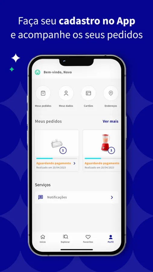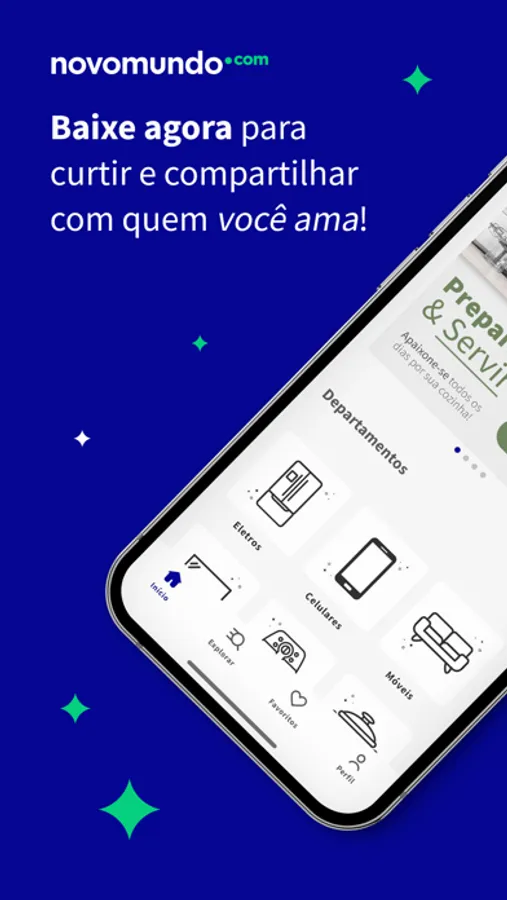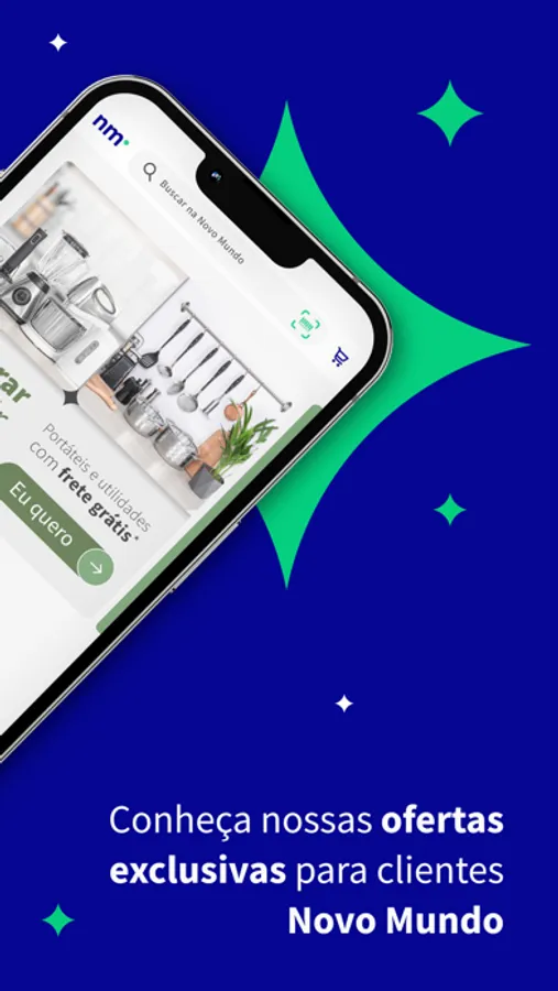 Explore o App Novomundo.com, aqui você encontra variedade em produtos e frete grátis* para comprar seu novo Smartphone, decorar sua casa com Guarda-Roupa Casal com Espelho, Fogões, Geladeiras, encher a penteadeira de Produtos de Beleza e muito mais!