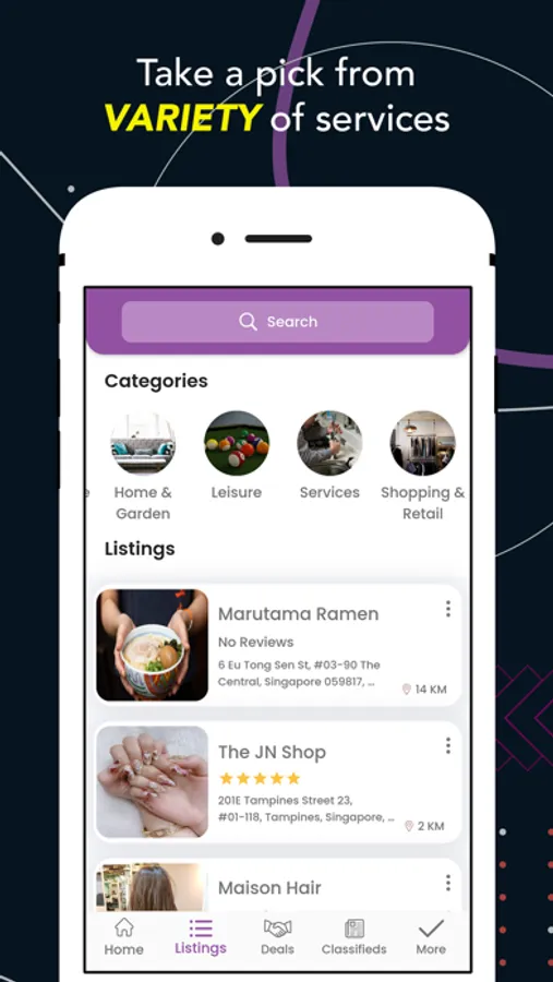 Find products, services and deals for restaurants, hawkers, beauty, spa, salon, retail, electronics, car workshops, entertainment, leisure activities and many more!