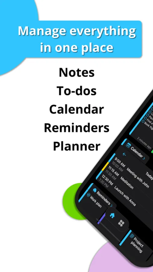 Take your ideas down quickly or scan documents and convert them into text. Also, convert notes to documents such as PDF or DOCX and share them. Plan your day by assigning tasks to your to-do list and track important and planned tasks using smart lists. View all of your calendar events in one place and keep track of all activities. Add reminders based on specific times and locations (e.g. when you arrive at work) and get organized by combining your plans.
