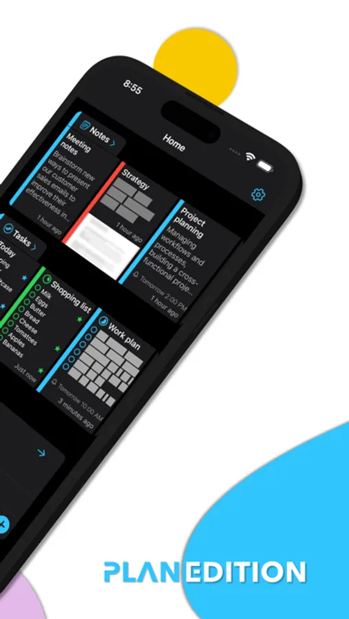 PlanEdition combines notes, to-do lists, calendar, and reminders in an exceptional way and offers multiple exclusive features.