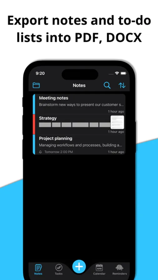 - Export notes and to-do lists with multiple export options including PDF, DOCX, JPEG, and more