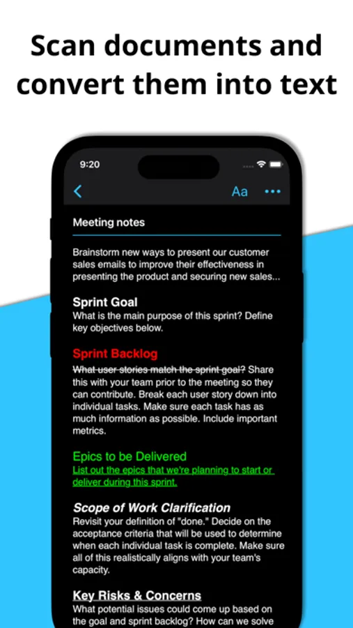 - Scan documents and quickly convert them into text