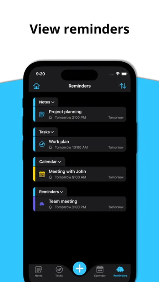 - Set reminders based on time and location (e.g. when you arrive at work)