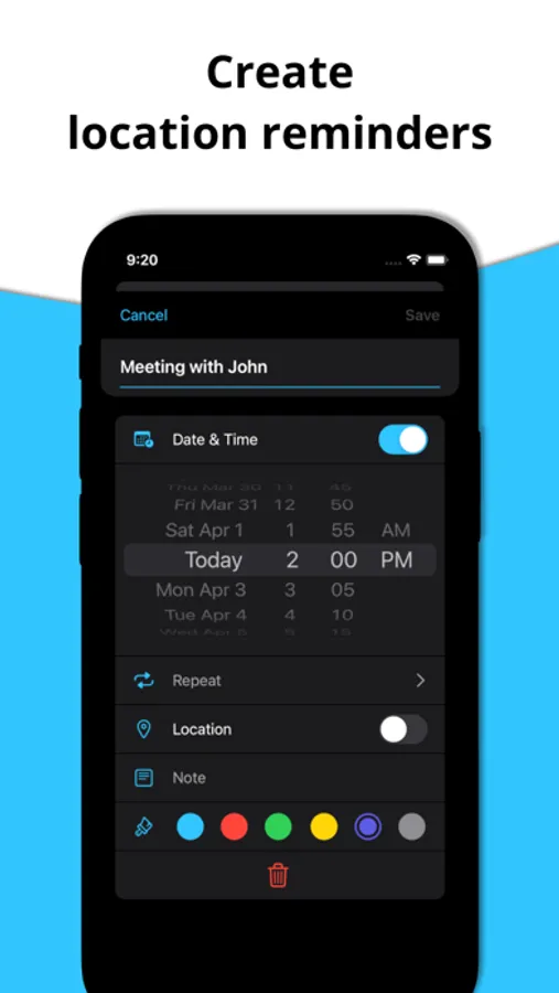 - Set one-time or recurring reminders