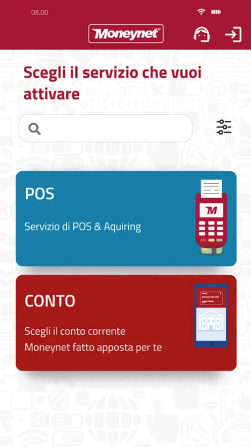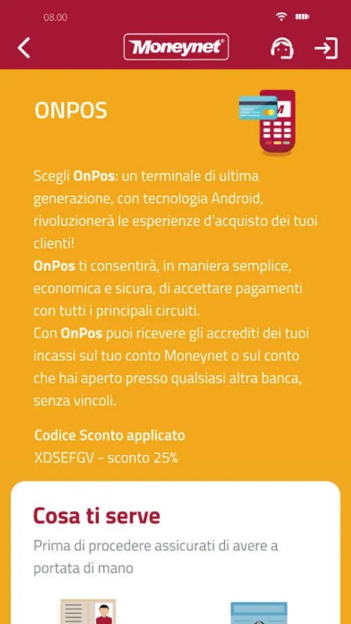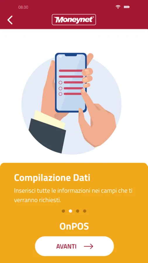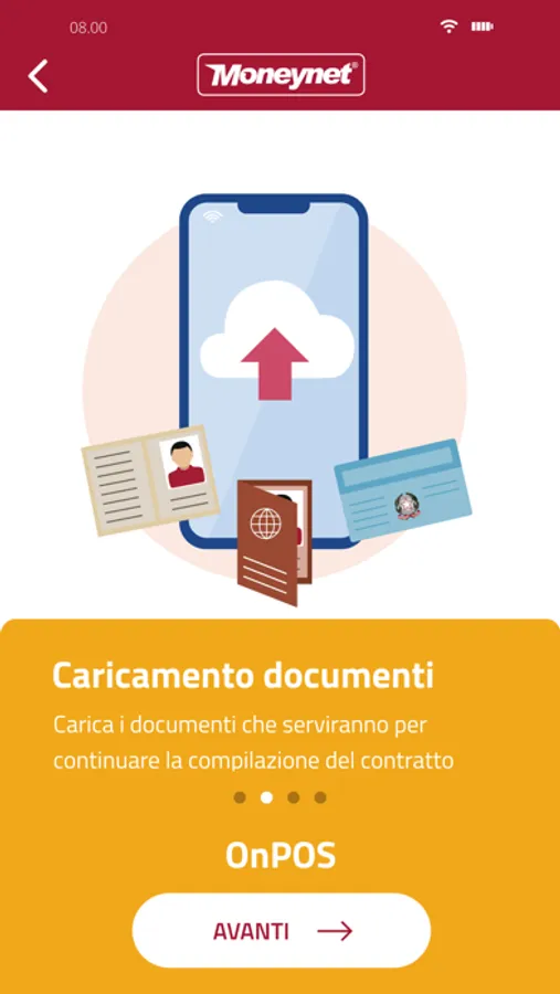 L’App integra le funzioni di on-boarding che ti consentono di attivare tutti i servizi Moneynet in modalità self.