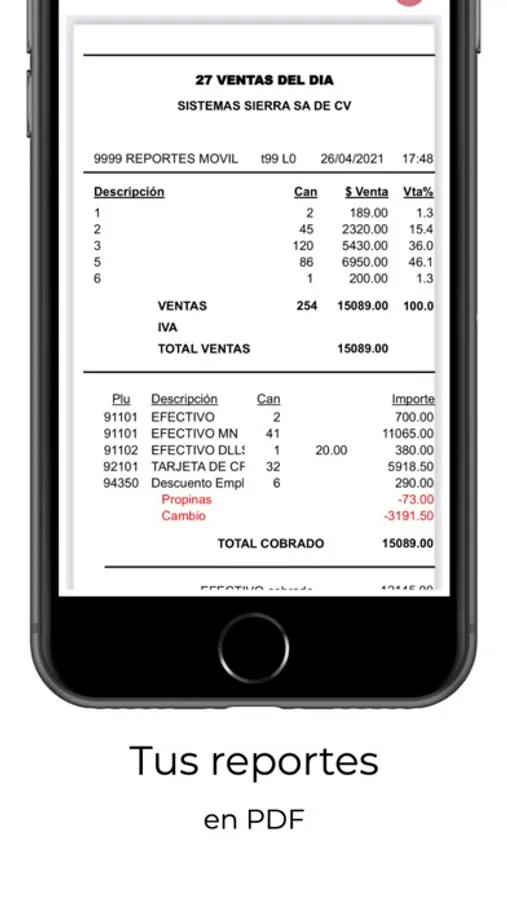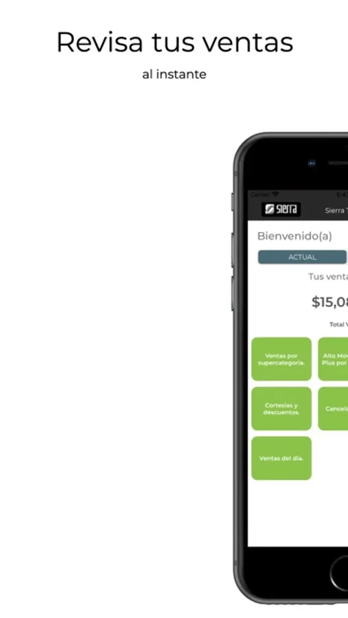 Aplicación móvil de consulta de ventas Sierra en tiempo real, con 7 diferentes reportes detallados.