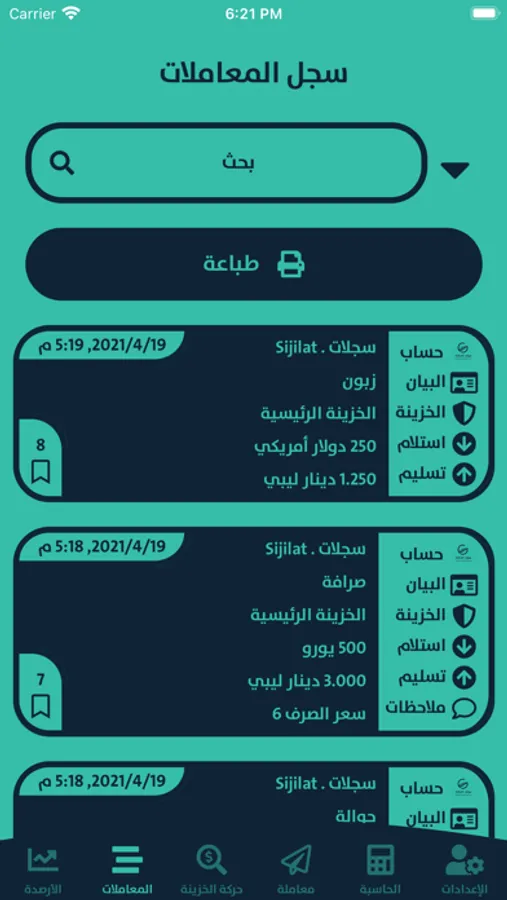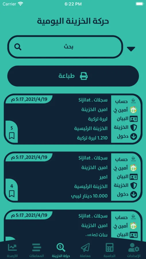 من مميزات التطبيق امكانية ارسال المعاملات ورصد حركة الخزائن الخاصه بك واضافة فروع وتتبع كافة العمليات التي تقوم بها لحظة بلحظة