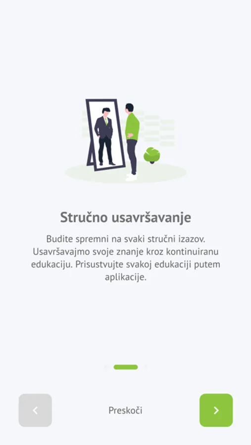 Pored pristupa svom profilu u registru, član ima mogućnost stručnog usavršavanja putem aplikacije. Svi kongresi, edukacije i drugi oblici stručnog usavršavanja dostupni su članovima. Registracije na svaku edukaciju možete napraviti putem aplikacije, pratiti sve online edukacije i za to dobiti certifikat.