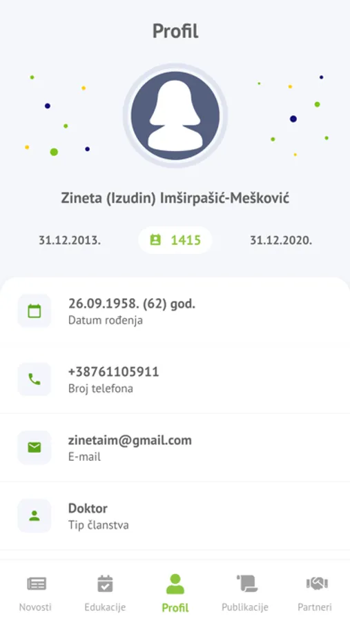 Profil člana predstavlja elektornsku člansku karticu i služi kao zamjena za fizičke kartice. Elektonske članska kartica služi kao legitimacija na svim kongresima i edukacijama.