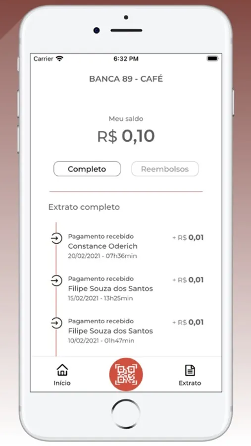 - Apresenta seu QRCode para efetuar uma venda;