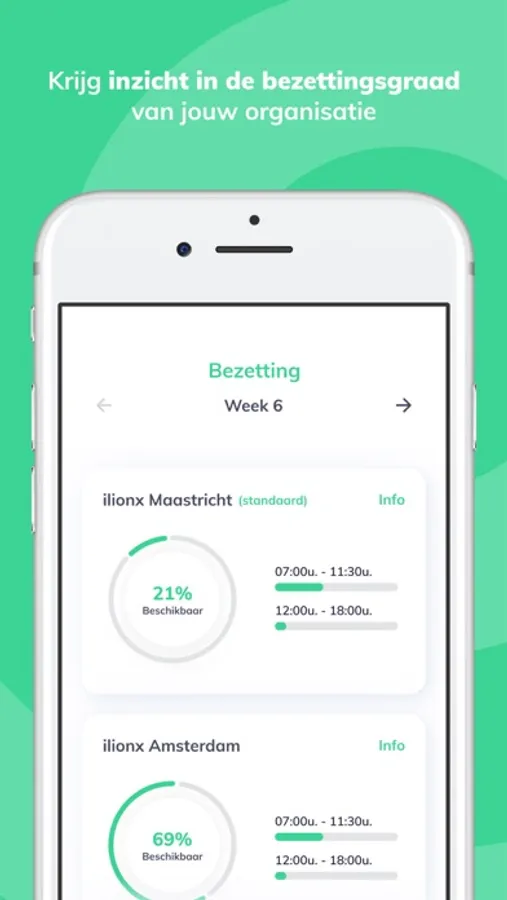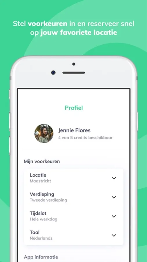 Bekijk je weekplanning in een duidelijk overzicht en krijg inzicht in de bezettingsgraad van alle locaties. Stel jouw profielvoorkeuren in om nog sneller een werkplek te reserveren op je favoriete locatie.