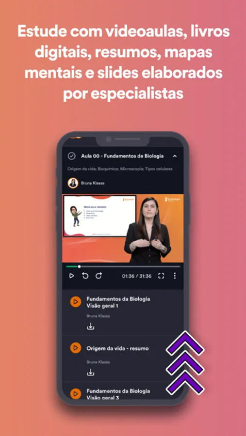 - Cursos em videoaulas, livros digitais, resumos e slides elaborados por professores especialistas.