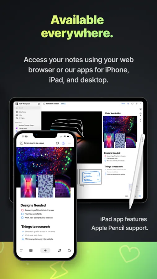 Invite guests to any of your pages to brainstorm, collaborate on todo lists, or share ideas.