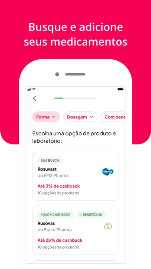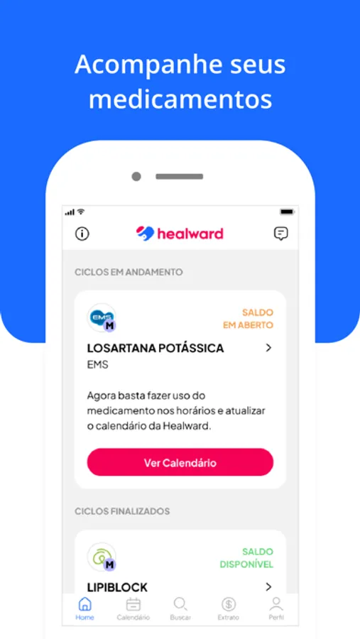PARA INICIAR UM CICLO NO APP HEALWARD, BUSQUE, ESCOLHA E ADICIONE OS MEDICAMENTOS PRESCRITOS PELO SEU MÉDICO.