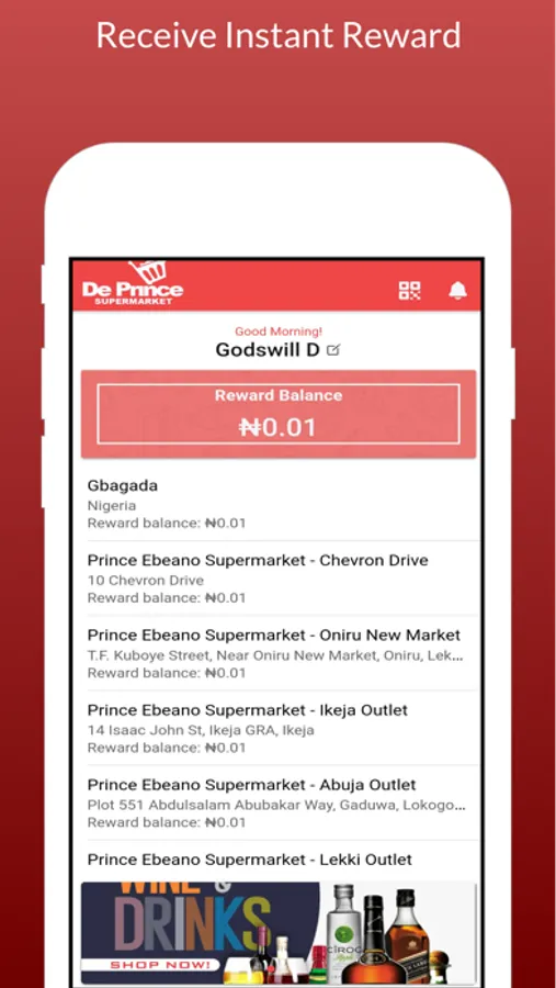 DePrince Rewards is a digitized loyalty program application designed to give points to our customers & reward them for their every purchase they make on any of our outlets.