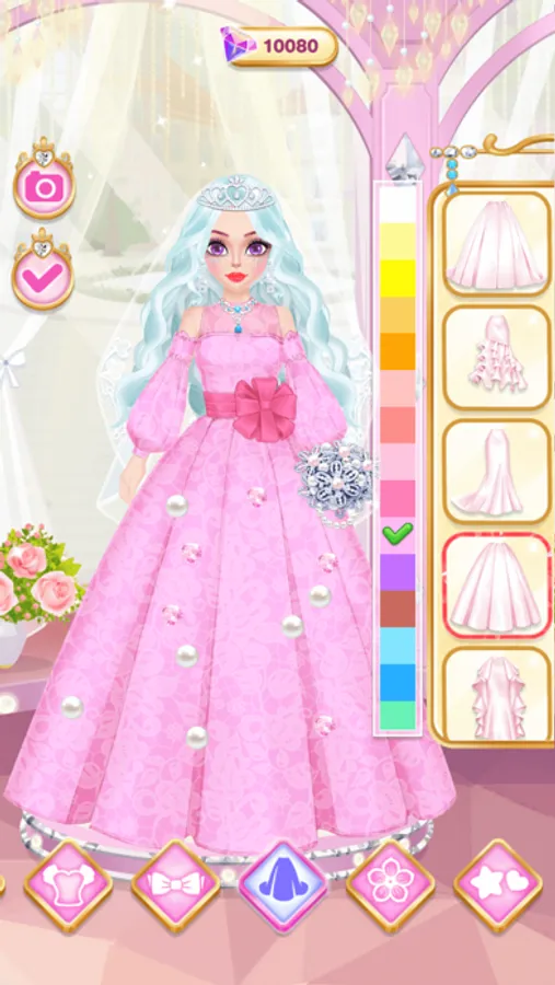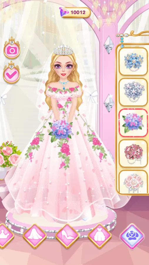 --Enter the fitting room and match the beautiful bride with the most gorgeous and graceful wedding dress! Carefully select from hundreds of hairstyles, veils, headdresses, jewelry, crowns, bouquets, wedding shoes and more!