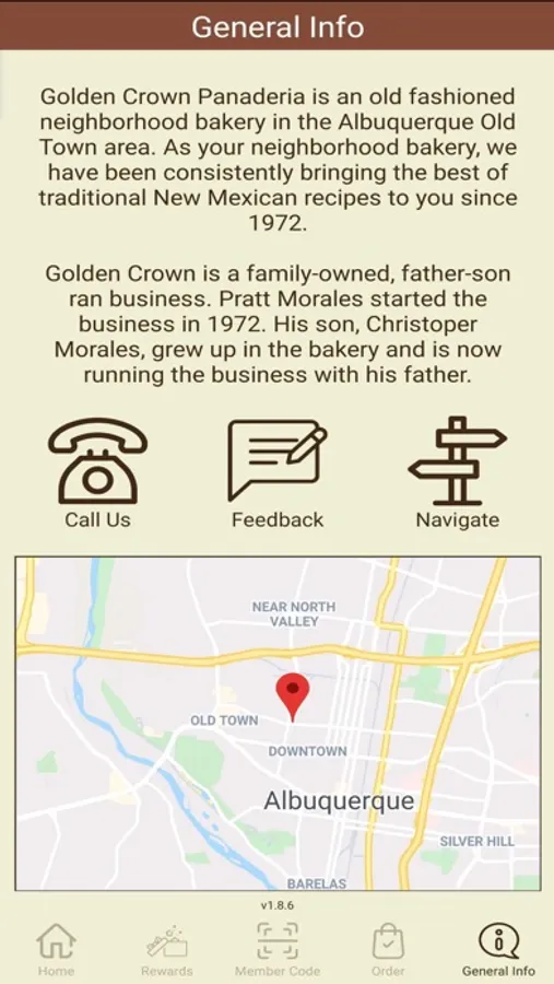 The Golden Crown Bakery App is now available! Order on the app, skip the line and have your items ready when you arrive! Gain points towards new rewards during each purchase and redeem rewards.